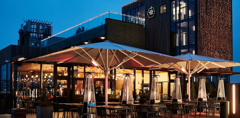 Her får du en af byens smukkeste udsigter med panorama over Limfjorden, Aalborgs tage og byens puls. Rooftoppen kombinerer afslappet stemning med moderne design og byder på grønne omgivelser, loungemøbler og plads til både ro og liv.