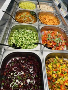 - 4 store buffet’er med mere end 60 varianter af hjemmelavede salater og grøntsager