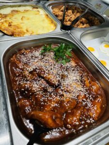 - 3 store buffet’er med mange forskellige lune retter